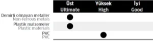 It is used for cutting aluminum, PVC and non-ferrous materials. For cutting extruded products and pipes with a thickness not exceeding 3mm.